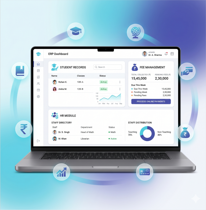An ERP system is a unified platform that helps institutions manage academic, administrative and financial operations from one place.