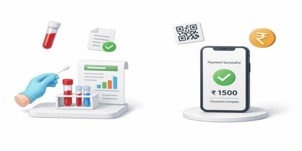 The same lab runs differently. A patient books a test online, pays via UPI, receives a digital receipt instantly and downloads the report later – without ever visiting the billing counter.